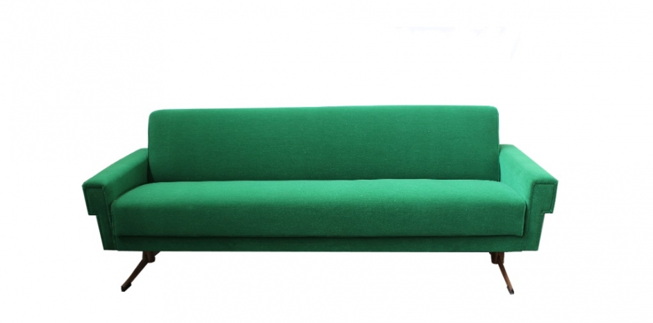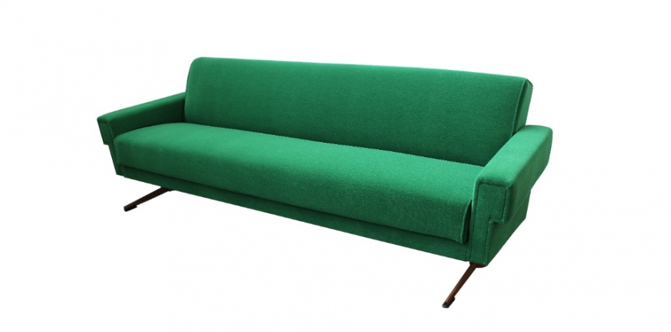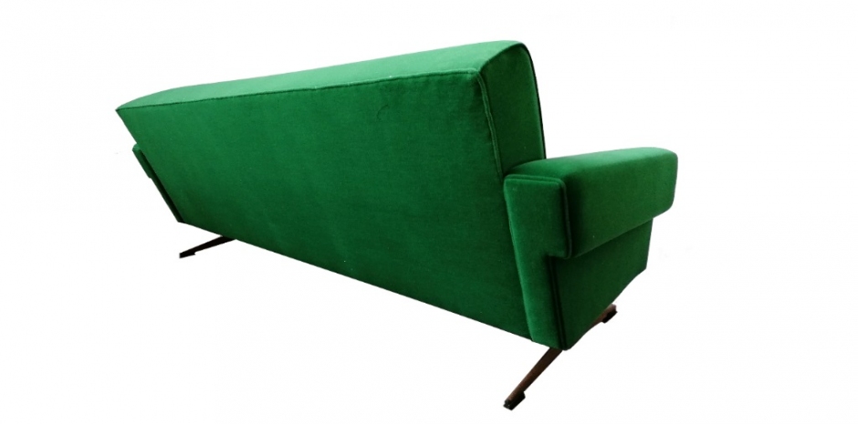 Italian stunning Midcentury Emerald Green sofà with metal foot
